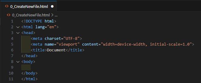 - 이 상태에서 Tab 또는 Enter키를 누르면 html 문서의 기본 구조가 자동으로 작성된다.