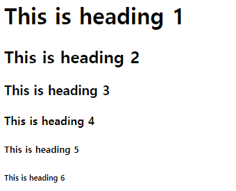제목태그는 제목을 의미하며, h1부터 h6까지 존재한다. h1이 가장 큰 제목 태그이고 h6이 가장 작은 제목 태그이다.