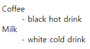 <dd>- black hot drink</dd>