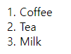 순서가 있는 목록을 의미하며, 각 리스트 아이템 앞에 숫자가 생긴다.