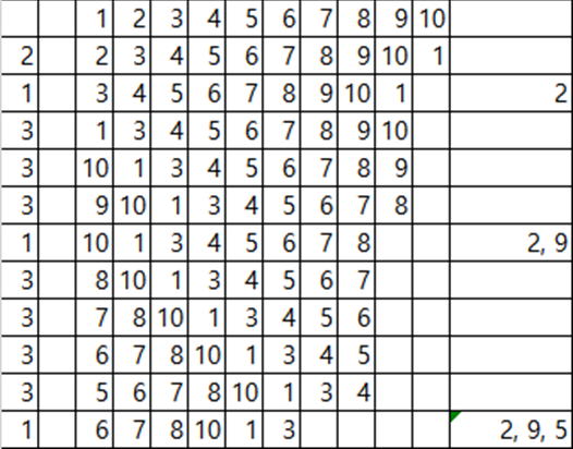 예제 2에서는 큐의 크기는 10이고 3개의 수 2, 9, 5 를 뽑아내고자 한다.