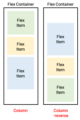 row-reverse와 다른 점은 item끼리의 순서는 바뀌지 않는다는 점이다.