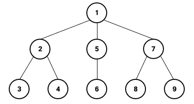 2) 1번노드의 경로는 2, 5, 7이 있고, 가장 앞에 있는 2번 노드에 접근한다.