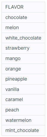 SHIPMENT_ID, FLAVOR, TOTAL_ORDER는
