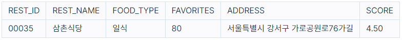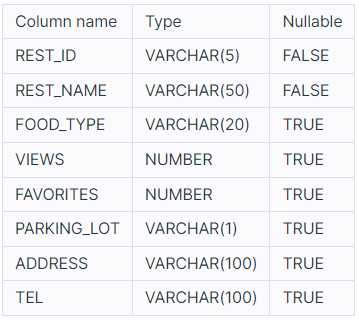 다음은 식당의 정보를 담은 REST_INFO 테이블과